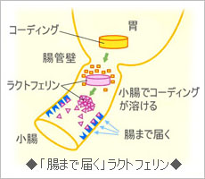 牛乳のラクトフェリンを人の健康に役立てるため、NRLファーマはラクトフェリンに特殊なコーティングをする事で、胃では溶けずに腸まで達してから溶ける様にする技術を開発しました。腸溶性ラクトフェリンは、胃で分解される事なく腸まで届いて吸収され、有効に活用されることが期待できる健康補助食品です。